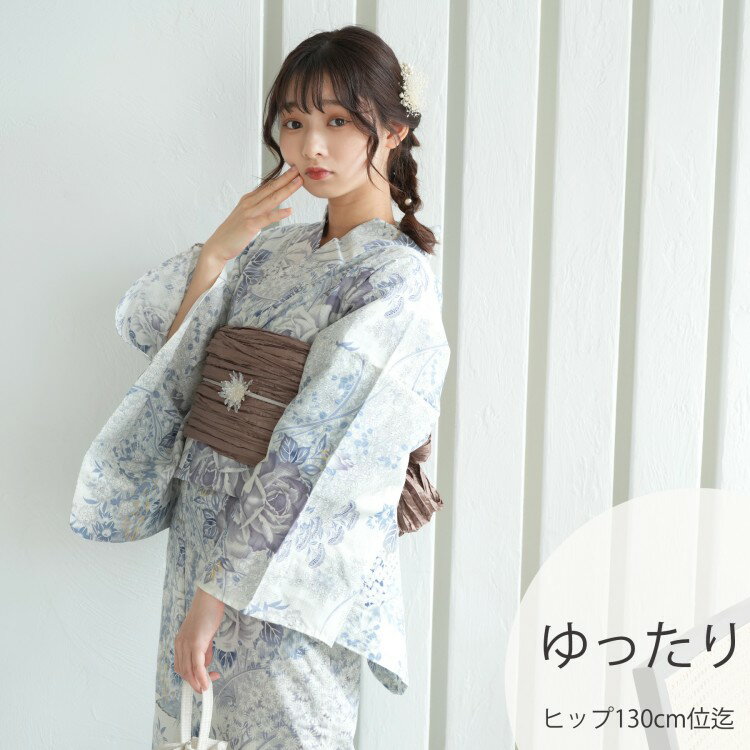 浴衣 セット レディース 浴衣 3点セット(浴衣/帯/下駄)日本製生地 国内染色 和歌山染工 水色 ブルー グレー 白 青 ばら 紫陽花 小菊 Nico Antique ニコアンティーク 浴衣セット ゆかた 女性 レトロ ゆったりサイズ 大きいサイズ 3L
