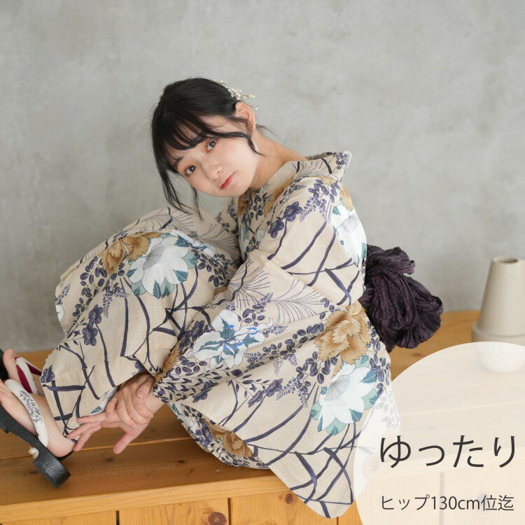 浴衣 セット レディース 浴衣 3点セット(浴衣/帯/下駄)PEACE BY PEACE YARN PROJECT オーガニックコットン 国内染色 和歌山染工 サステナブル エシカル ベージュ 紫 鉄紺 マーガレット 浴衣セット ゆかた 女性 大人 レトロ ゆったりサイズ 大きいサイズ 3L