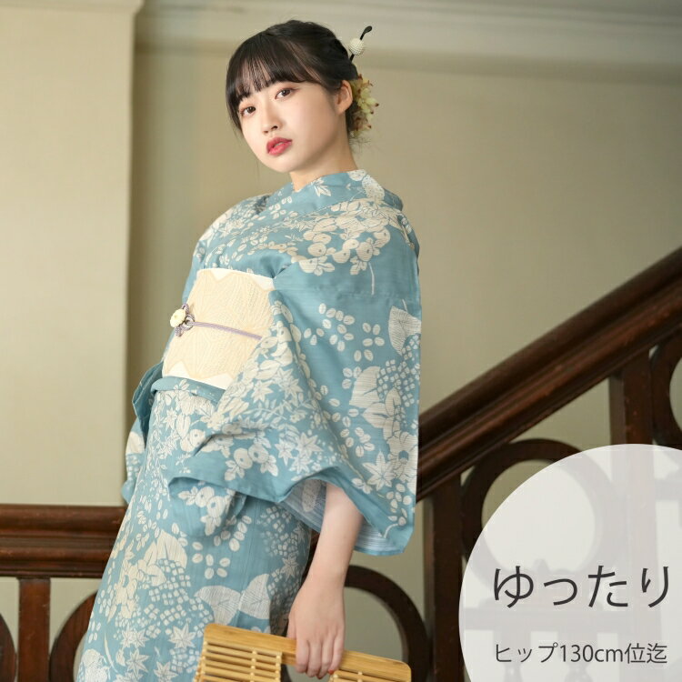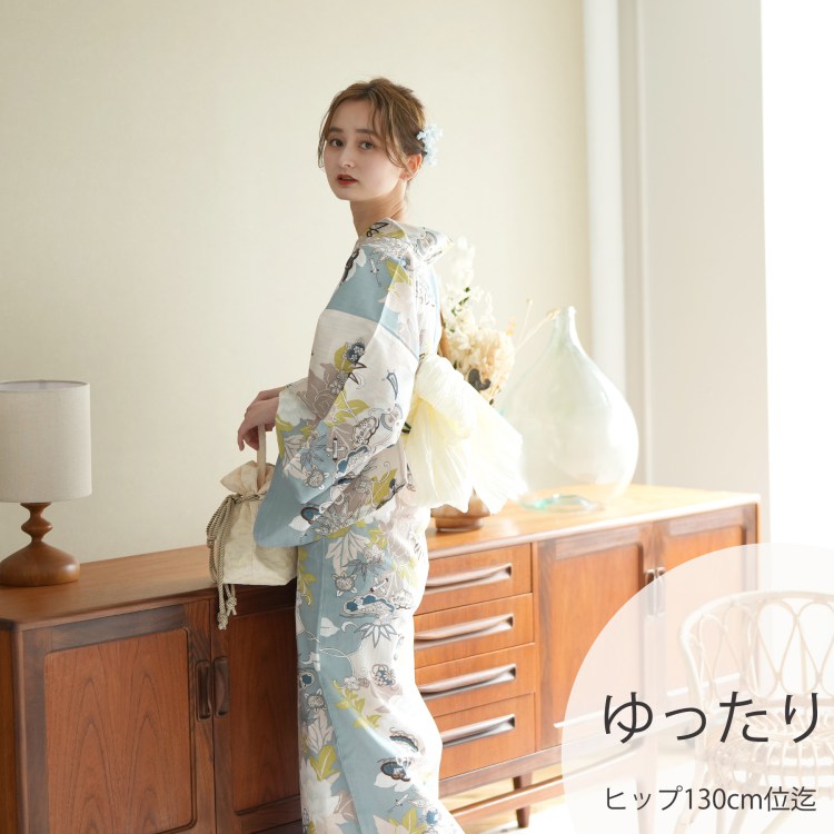浴衣3点セット (浴衣/帯/下駄) utatane 3L ゆったりサイズ(身長155-165cm ヒップ130cm頃) 浴衣 セット 浴衣 レディース 花 セット 大人 青 系 女性 ladies ブルー 水色 ベージュ 菊 萩 おみなえし 紫陽花 あじさい 浴衣 帯 下駄 昭和初期 アンティーク 復刻 大正浪漫