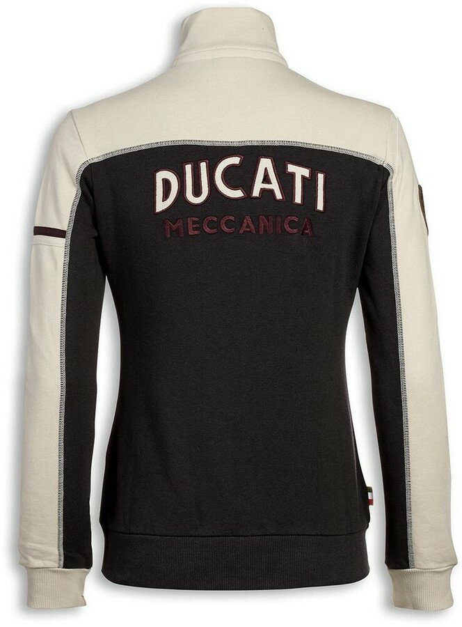 ■商品概要レディースカラー:ブラック/ホワイト■詳細説明The womens version of the Meccanica sweatshirt is a full zip garment in anthracite grey and cream with stone-washing to enhance its vintage look. This piece is enriched with customisations such as crimson and cream bands on the left sleeve and Meccanica logo patches on the right sleeve and on the chest. The cut and fit make this garment extremely comfortable and the back boasts embroidery with a jersey application of the Ducati Meccanica logo.■注意点 ※取り扱い説明書が付属する場合は外国語となります。