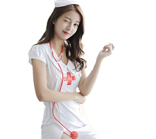 【BI-10054】ナース服 コスプレ セクシー コスチューム 白衣 女医 ドクター 看護婦 医者 コスプレ 衣装 聴診器、ストッキング、Tバック付き 5点セット(ホワイト)