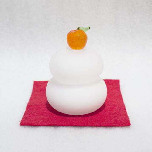 <ガラス細工 硝子細工 正月 迎春 鏡餅 おめでた雑貨 置物>水引のお色を選べる・鏡餅<ミニチュア小物 ガラス細工><ガラス細工 ファニチャー>【ギフト プレゼント ラッピング】