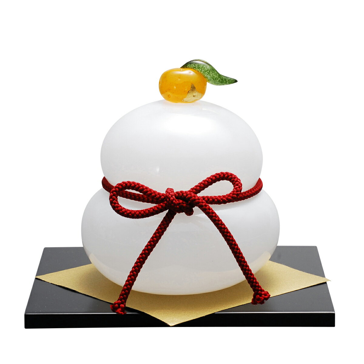 招福鏡餅(小) N50 ガラス 台付き 飾り 鏡もち お正月飾り 縁起物 幸運 運気アップ 風水 置物 インテリア ギフト 期間限定 新年挨拶 お取り寄せ商品 訳あり